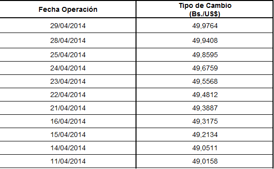 Las transacciones de compra y venta de divisas en el Sistema Cambiario Alternativo de Divisas (Sicad II) promediaron este martes, 29 de abril, una tasa de cambio de 49,97 bolívares por dólar, levemente superior a los Bs.49,94 que resultaron de la jornada previa. El indicador se ha mantenido en alza durante los últimos 11 días de labor bancaria.