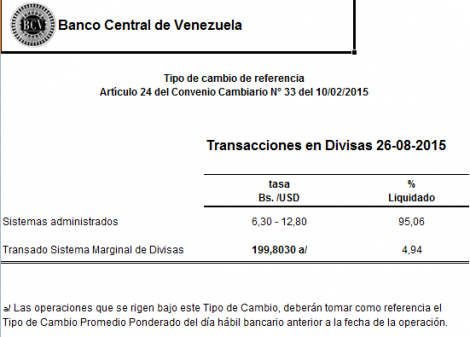 El BCV publicó que el porcentaje transado el miércoles por este esquema cambiario representa el 4,94% de las divisas, mientras que el otro 95,06% sigue liquidándose en los otros dos tasas de Bs 6,30 y Bs 12,80.