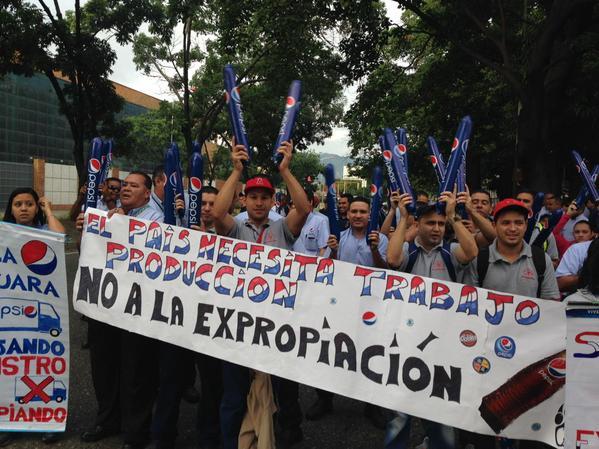 Los trabajadores de Pepsi Cola protestaron en la zona industrial de La Yaguara, en Caracas, en rechazo a las medidas estatales por las que pretenden la construcción en el lugar de edificaciones destinadas a la gran misión vivienda Venezuela.