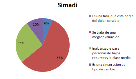 Un 10 por ciento considera que es la sinceración del tipo de cambio y un 6 por ciento cree que es una tasa que está cerca del tipo de cambio en el mercado negro.