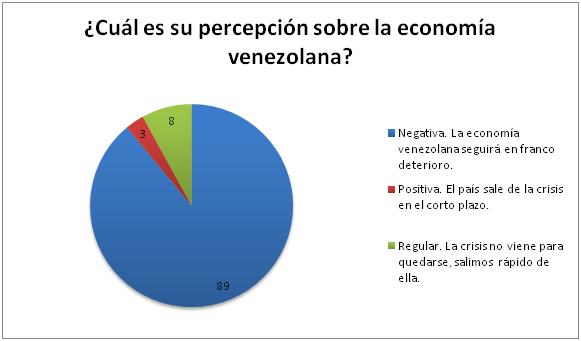 Esta semana la revista Dinero les preguntó a sus lectores ¿cuál es su percepción sobre la economía venezolana? Del total de participantes, el 89 por ciento consideró que es negativa porque “la economía venezolana seguirá en franco deterioro”. Mientras que el 8 por ciento respondió ser positiva porque “el país sale de la crisis en el corto plazo”.