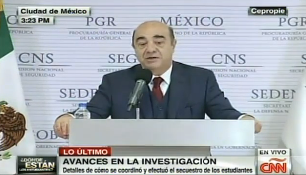Murillo Karam informó que integrantes del grupo delictivo "Guerreros Unidos" aseguraron haber quemado a normalistas en un basurero del municipio de Cocula.