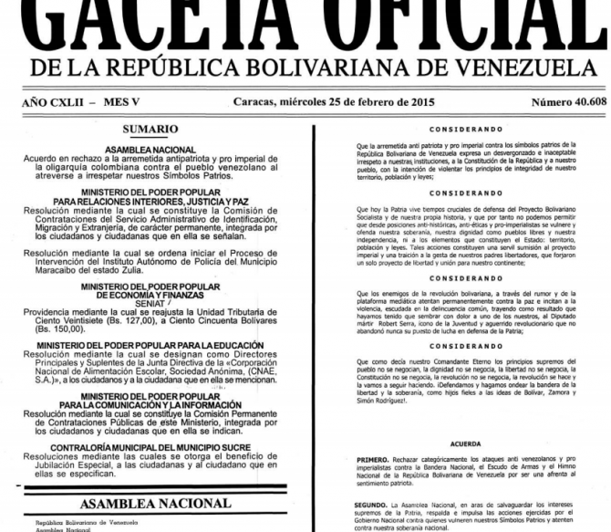 Los detalles salieron en la gaceta número 40.608 que circuló el jueves.
