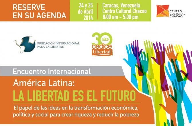 En el marco de los 30 años de Cedice Libertad, Caracas será epicentro del encuentro internacional: “América Latina: La libertad es el futuro. El papel de las ideas en la transformación económica, política y social para crear la riqueza y reducir la pobreza”, que se realizará los días 24 y 25 de abril en el Centro Cultura Chacao.