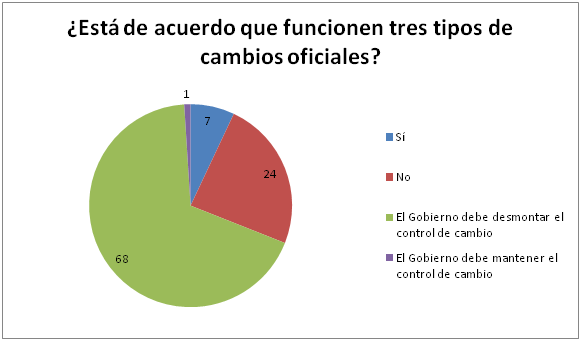 El 7% considera que es positivo este sistema, mientras que el 1% respondió que el gobierno debe mantener el control cambiario.