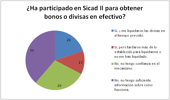 Mientras que el 29 por ciento aseguró no tener suficiente confianza en este sistema. Para el 20 por ciento su opinión es positiva porque le liquidaron las divisas solicitadas en el tiempo previsto. Y el 13 por ciento opina lo contrario porque o Sicad II no le aprobó las divisas o se las pagaron tarde.
