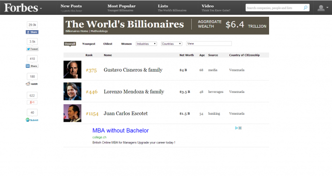 Los multimillonarios venezolanos en Forbes