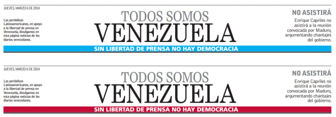 Frente a la gravedad de la situación, y conscientes de que sin libertad de prensa no hay democracia, múltiples y diversos periódicos latinoamericanos afiliados a La Asociación de Editores de Diarios y Medios Informativos ANDIARIOS, al Grupo de Diarios de Las Américas GDA, y al Grupo Periódicos Latinoamericanos PAL, han decidido publicar una página diaria con noticias tomadas de los periódicos de Venezuela.