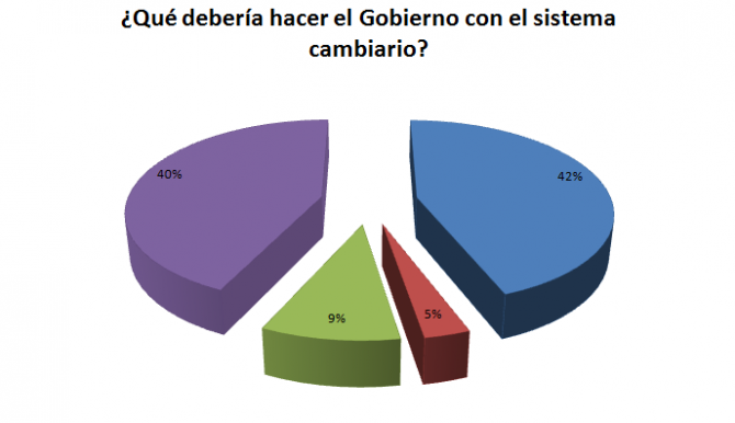 En la semana del 5 al 12 de enero, ante la pregunta de ¿Qué debería hacer el Gobierno con el sistema cambiario?, el 42 por ciento de las personas encuestadas dijo que es necesario el desmontaje del control de cambio porque "ha generado corrupción y escasez".