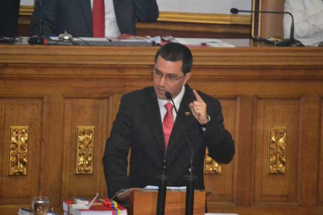 El vicepresidente de la República, Jorge Arreaza, ingresa la sala plenaria de la Asamblea Nacional, para entregar el informe de memoria y cuenta del tren ejecutivo, correspondiente al año 2014.