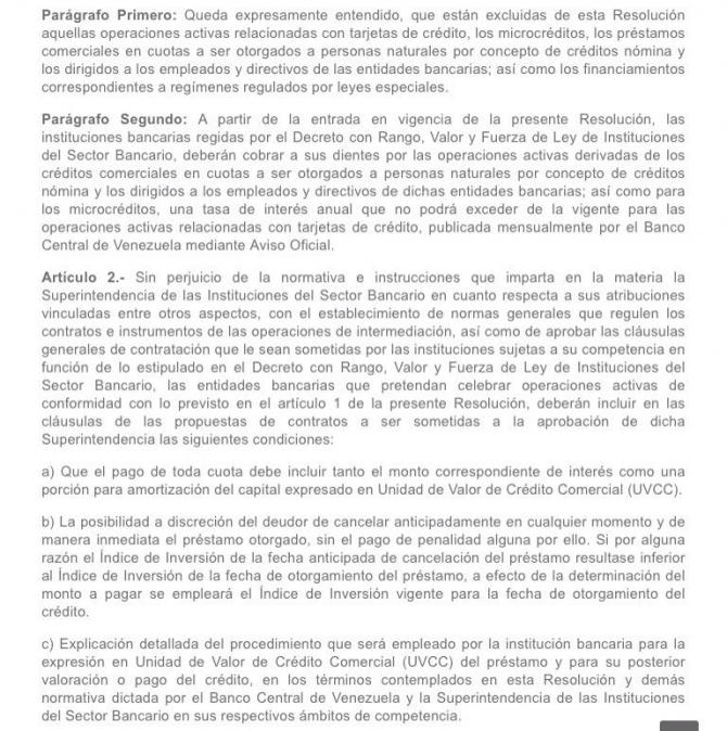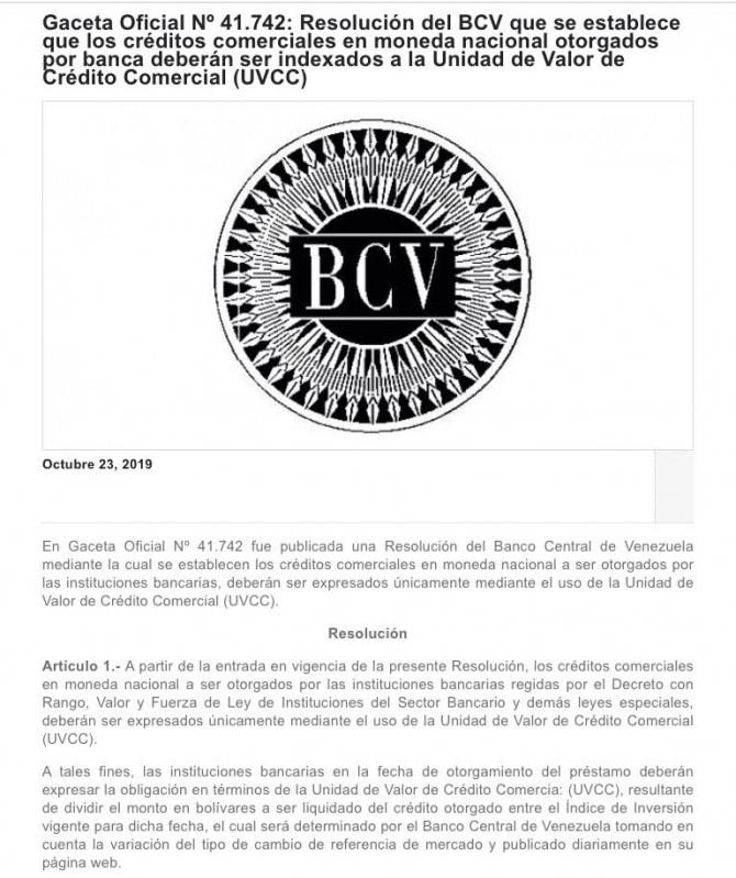 Según la resolución que circuló en la Gaceta Oficial número 41.742, los créditos comerciales que son otorgados por las instituciones financieras deberán ser expresados unicamente mediante el uso de la Unidad de Valor de Crédito Comercial (UVCC).