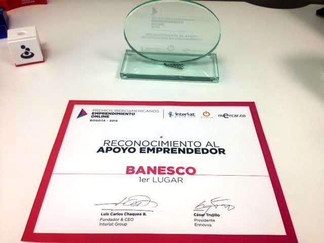 Fernando Blanco, gerente general de Banesco Oficina de Representación Colombia, recibió el premio en nombre de Banesco durante el Primer Congreso Iberoamericano de Emprendimiento Online. La actividad fue organizada por Interlat, la Escuela Latinoamericana de Negocios en Internet.
