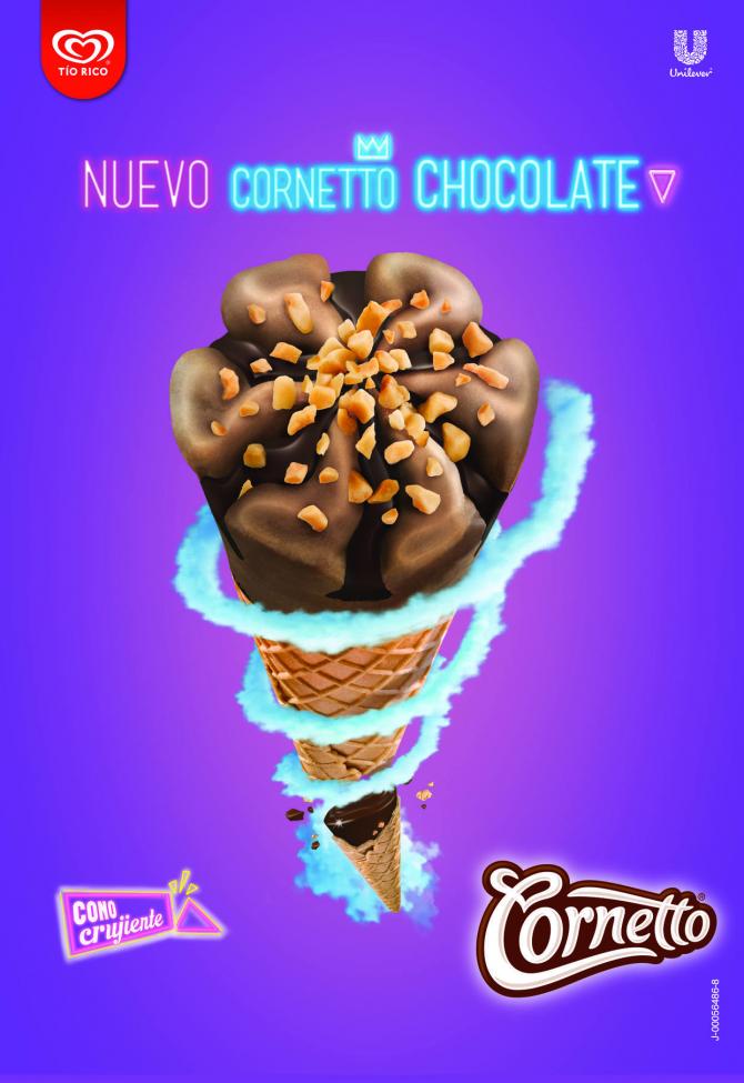 Cornetto®, barquilla icónica de los helados Tío Rico, refuerza su portafolio con el lanzamiento de Cornetto® Chocolate, el helado que rompe el hielo y las reglas de lo tradicional, ofrece la mejor combinación entre la crujiente barquilla y el mejor helado de chocolate con cubierta de chocolate, lluvia de maní, explosión de syrop de chocolate y su inconfundible punta de chocolate. Su promesa: ¡Disfruta el viaje, amarás el final!