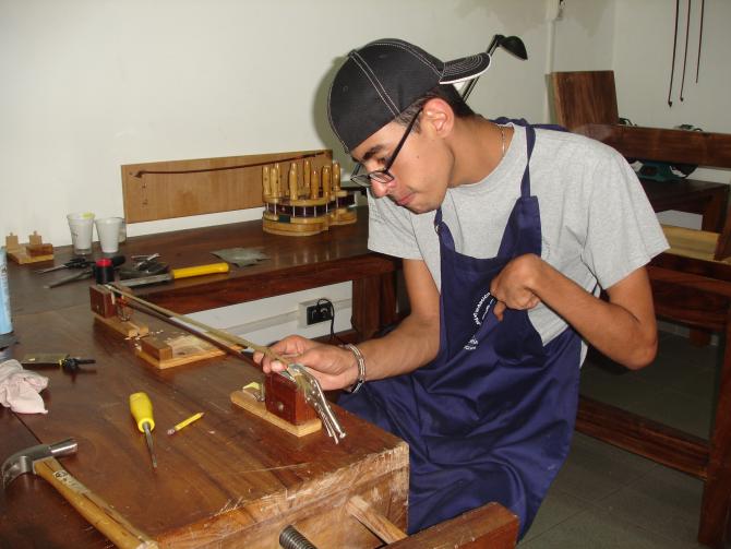 Durante el mes de febrero, los donativos recaudados a través del programa “Una Sonrisa a Su Cuenta” de Excelsior Gama serán destinados a apoyar la formación de personas con discapacidades motoras en la fabricación, reparación y mantenimiento de instrumentos musicales a través del Taller de Luthería que lleva a cabo la Fundación Venezolana Procura de la Parálisis, FUNDAPROCURA, gracias a un convenio con Fundamusical Simón Bolívar, órgano rector del sistema Nacional de Orquestas.