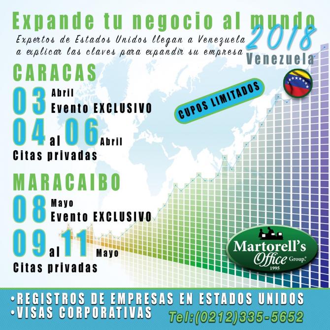 "Expande tu negocio al mundo 2018", es un evento exclusivo y privado, que ya se realizó en la ciudad de Valencia este año, y en el cual participan los dueños de empresas, emprendedores e inversionistas, con visión de expandir sus negocios a otros países, hacer su registro, abrir sucursales, o la apertura de cuentas bancarias corporativas en los Estados Unidos.