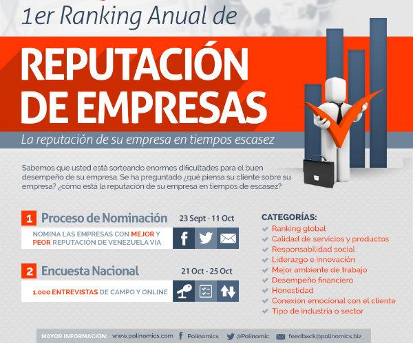 Polinomics anuncia la primera edición de su Ranking Anual de reputación de empresas: “La reputación de su empresa en tiempos de escasez”.