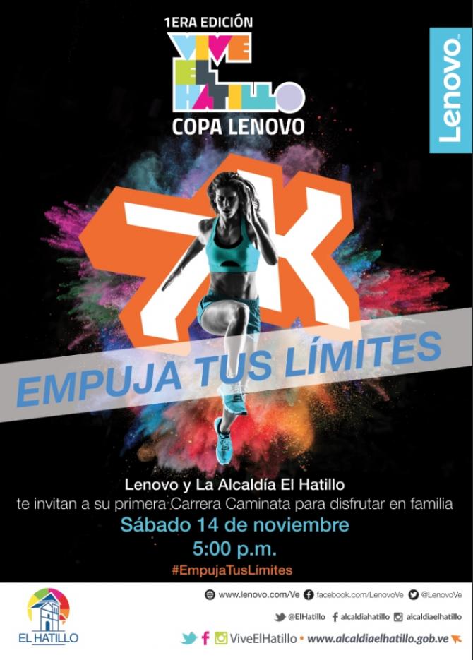 Lorenzo Rubín, Gerente General de Lenovo Venezuela y la región BUPE (Bolivia, Uruguay, Paraguay y Ecuador), detalla que para celebrar estos primeros 10 años de Lenovo Venezuela, el equipo de la compañía decidió diseñar y crear un evento deportivo conjuntamente con la Alcaldía de El Hatillo, que impulsan como un legado cultural y deportivo para el municipio y su comunidad . Nace entonces la iniciativa Vive El Hatillo, Copa Lenovo, una carrera y caminata de 7K, con el patrocinio de Lenovo.