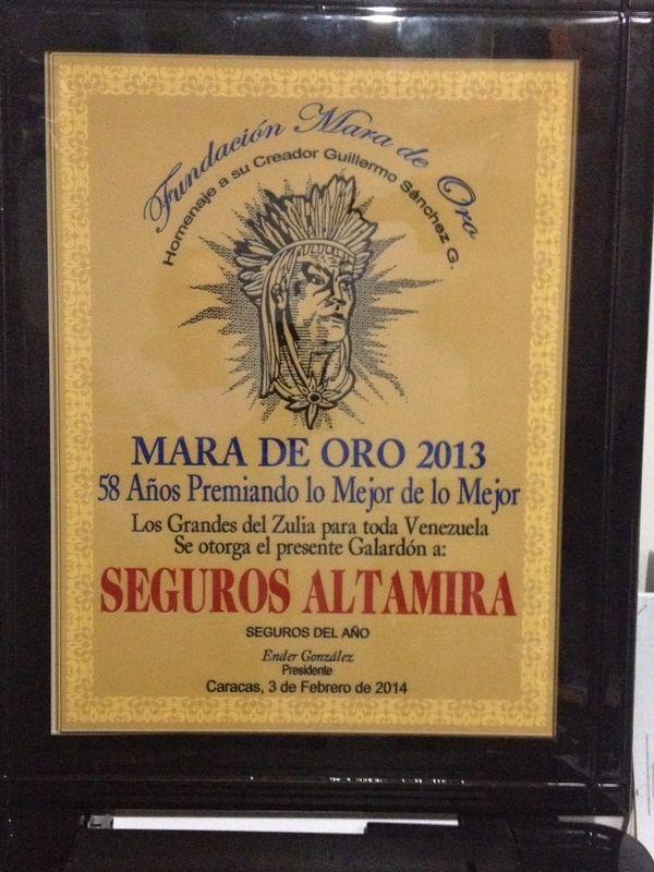 Seguros Altamira fue galardonada como “Empresa del Año” al recibir el premio “Mara de Oro 2013”, distinción que reconoce la labor y trayectoria del talento profesional y empresarial en el país.