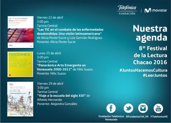 Telefónica | Movistar participará en el 8º Festival de la Lectura Chacao 2016, que se llevará a cabo del 21 de abril al 1º de mayo, en la plaza Francia de Altamira en Caracas.